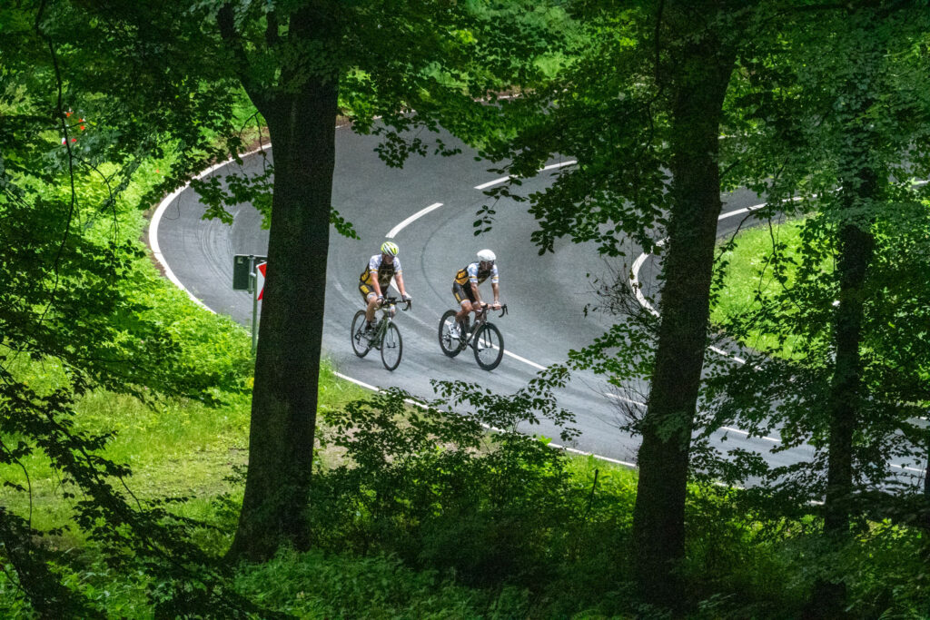 - Saturday, July 19 – A more demanding 63-mile clockwise journey. The route led the riders in a general northeasterly direction, climbing into the majestic Teutoburger Forest. This was a delightful treat for the senses, a winding path through dense ancient woods and charming rural villages Aschendorf, Bad Rothenfelde, Borgholzhausen, and Bockhorst. The return unfolded before them, each a testament to Germany’s bucolic beauty. The descent from the woods offered flat, welcoming roads back to Warendorf and the Sportschule for another welcoming meal.