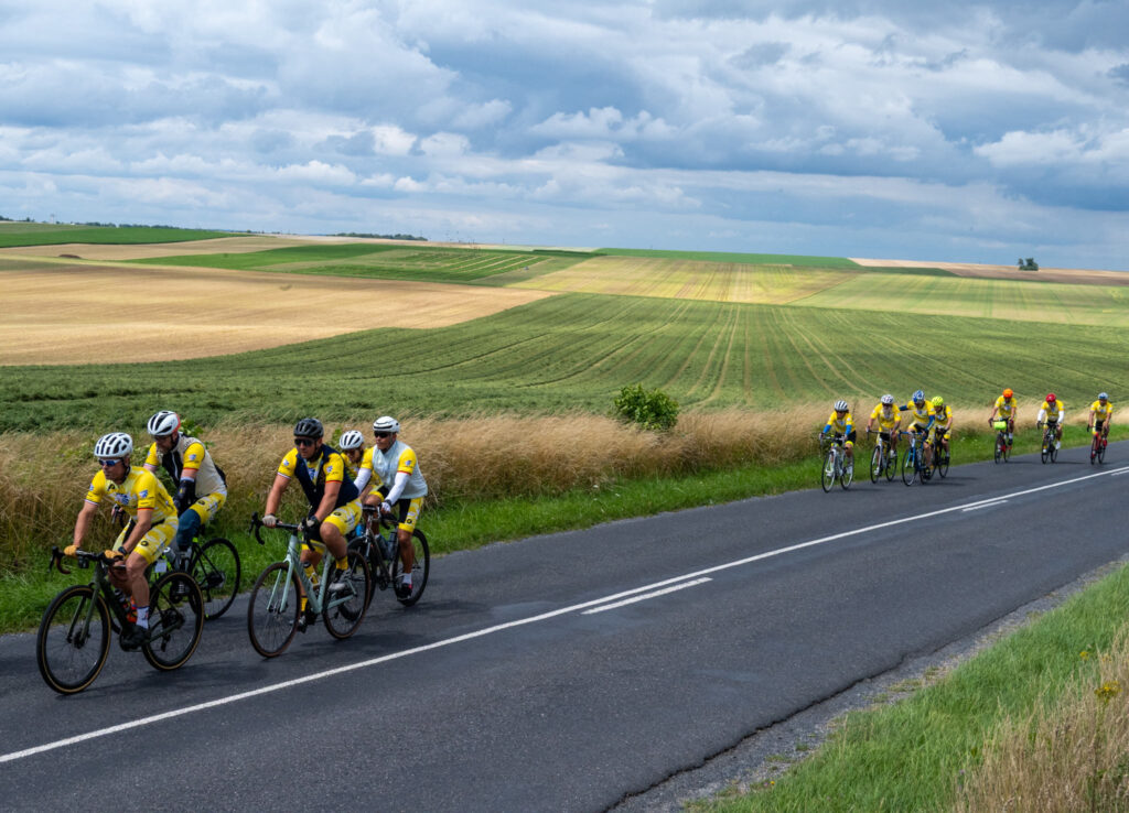 - Thursday, July 24 –67-mile distance deepened the emotional impact as the riders rode from Chateau-Thierry to Melun. The day began with reflection at the ABMC Chateau Thierry and then moved to the iconic ABMC Belleau Wood Battlefield, a site forever etched in American military history. At the ABMC Belleau Wood Cemetery, a profoundly moving scene unfolded: five US Marine Veterans, their uniforms a testament to their service, raised the flag and laid a wreath, as the rest of the group stood in solemn reflection, honoring those lost. However, it was at the Belleau German military cemetery where the journey truly blossomed into an act of profound reconciliation. Sargent Major Naef Adebahr delivered deeply moving words, acknowledging the shared humanity and sacrifice. Following his address, all the German riders reverently placed flowers at the monument, a gesture of national remembrance. In an act that transcended historical enmity, every other participant then followed suit, laying flowers on individual German graves. This singular moment, filled with quiet respect and shared sorrow, was a powerful testament to the healing power of remembrance and the capacity for former adversaries to find common ground in shared grief and honor. The collective act was described by most as “very moving;” and it undoubtedly served as the emotional zenith of the entire journey.